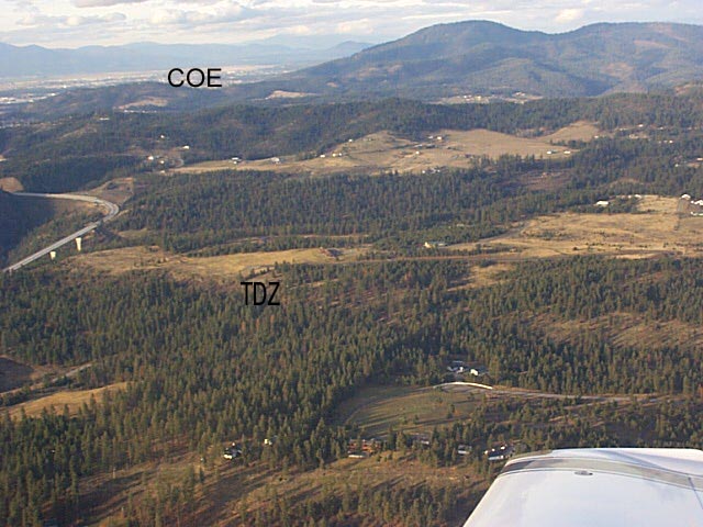 Airstrip DirectionsThe Regan Ranch airstrip is a private facility, NOT OPEN to the general public. You must secure permission prior to landing at Regan Ranch. As of August 8, 2006, the FAA location Identifier for the Regan Ranch landing facility is 6ID1. Regan Ranch Private Landing Field: The Regan Ranch landing strip is located at N47 38' 36", W116 42' 05", which is 9.5nm on the 150 radial from COE 118.8. Field elevation is 2,700' and magnetic variation is 19E. The field is 2,200 X 40 paved with a 60' rise from 7 to 29. Landing is always on 7 and takeoffs always on 29. The coordinates for TDZ Rwy 7 are N 47º 38' 58", W 116º 42' 29". The field is DAY VFR ONLY. Deer and Elk frequent the field so be alert. Local altimeter can be received from COE AWOS on 135.07 BUT the winds at COE are never the same, and frequently higher, than at Regan Ranch. Prior to departure call Regan Ranch 208 676 1922 with ETA to receive landing permission and local observations. Landing Procedure: Terrain and trees make Regan Ranch difficult to spot but the freeway bridge makes a good landmark. From 8 DME on the 150 from COE at 3,700 feet head 067 for right traffic 7. Check the landing area for animals, vehicles etc… and rock wings mid field to indicate landing intentions. Turn crosswind over the water and follow the lake on downwind. On final the terrain and the sloping field gives the illusion that you are higher than you should be. Be prepared to add power on short final. Prevailing winds are out of the southwest but usually becomes L&V once you are below the treetops next to the field. Compare GPS to IAS to estimate wind component. Plan to touchdown within 400 feet of the threshold (about parallel to the house). If you haven't touched down by the taxiway (about 800') go around. When in doubt, land at COE and call. We will be happy to come get you.