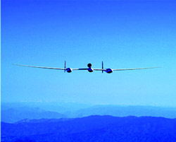 It's hard to measure fuel mileage in flight because the glider-like nature of GlobalFlyer throws it off the test condition if there's wind shift. Once when flying a low-speed point at high altitude, the airplane got too slow and took a 2,000-ft. drop to recover. But data taken in late November at the highest weight yet, 19,000 lb., "looked good," says Nichols. Ideally the aircraft would fly a Breguet cruise profile, constantly climbing as weight burned off, reducing airspeed to stay at a constant lift coefficient while keeping a high throttle setting for good engine efficiency. GlobalFlyer is so slow that Mach number is not a concern.